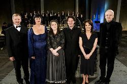 ![]() | PRESSESTIMMEN Höher kann der Anspruch nicht sein - faszinierend Sofia Gubaidulina als Musikerin auf dem Podium und - wie Anne-Sophie Mutter - im Publikum. Auf der Bühne der Allerheiligen Hofkirche der Meistercellist Julius Berger mit seiner Cello-Klasse, das Casal-Quartett, der Orpheus Chor München unter Gerd Guglhör. Alle bringen Musik der Modeme im so glücklichen Kontrast mit dem "alten" Orlando di Lasso. Aber das -ist es diesmal nicht allein. Der Klangforscher Alexander Lauterwasser setzt die Musik in Beziehung zum Element Wasser. Er bildet, auf eine Leinwand projiziert, die Schwingungen ab, die die Klangwellen auf einer Wasserfläche hervorrufen. Beim ersten Ton erscheint ein blauer Kreis, verändert unter Geige, unter Cello seine Gestalt. Es flimmert, flackert, scheint auch mal aufzuspritzen, die Farbe von blau in Gold zu wechseln. Es ist ein unaufhörlicher synästhetischer Prozess: "Waternight" (wie ein Stück von Whitacre heißt) - Wasser und Klang im Dialog, ein Konzert der Reihe "Musica sacra - sacra Lux". Das alles ist von der künstlerischen Leiterin Michaela Pods-Aue sehr genau über, legt, auch im Programm-Aufbau strikt durchdacht. Und wenn endlich Sofia Gubaidulinas Stück "Am Rande des Abgrunds" für sieben Celli und zwei Aquaphone dran ist, auch faszinierend. Die Komponistin selber spielt das glockenartige, wassergefüllte, saitenbespannte Instrument, schwingt es herum und erzeugt damit berückende Töne. Am Ende hatte das Publikum Gelegenheit, Jan Schmidt-Garres Film "Sophia - Biographie eines Violinkonzerts" (geschrieben eben von der Gubaidulina für Anne-Sophie Mutter) anzusehen mit einem tiefen Einblick in die Arbeitsweise einer Komponistin und einer Geigerin. tz München, 23. April 2008 |